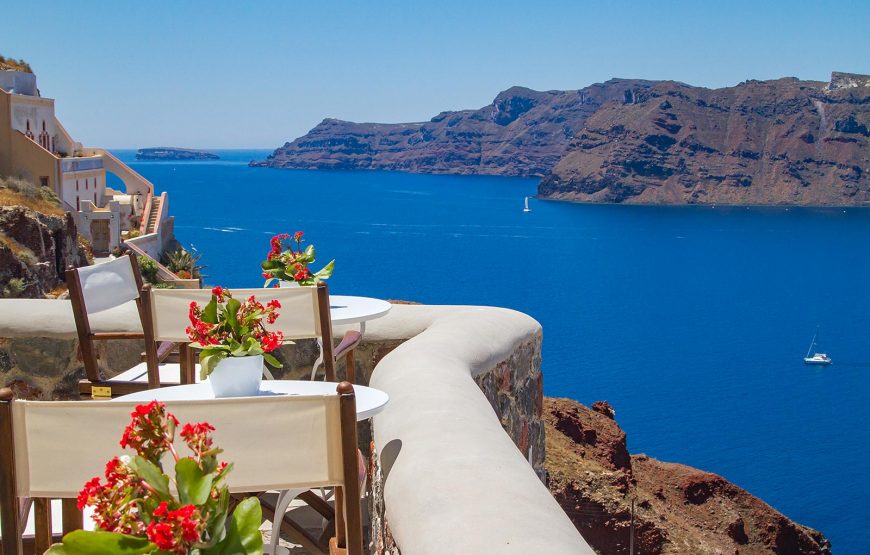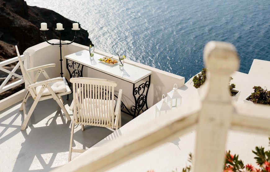 Το Oia Mare Villas βρίσκεται στο κέντρο του παραδοσιακού χωριού της Οίας στη Σαντορίνη. πάνω από τον κόλπο Αμμούδι, το παλιό λιμάνι της Οίας